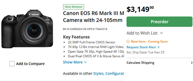 Sony RX1R III: Available from July 25, 2025, via retailers like B&H Photo and Amazon.com