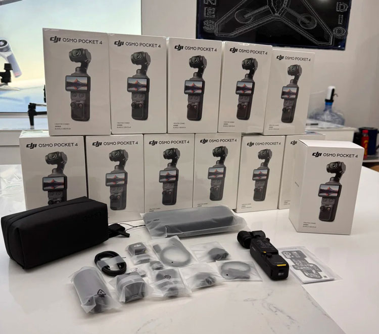 So just after two days of the DJI Avata 360 launch, now we have the Creator Combo images of the DJI Osmo Pocket 4 camera, the image show above covers all the Creator Combo accessories in it, which will be available to you with the Pocket 4 camera, and even just before that we have massive images of the DJI Pocket 4 camera available in Drone Tech Store, All these leaked images confirms that retailers are now stocked up with the Pocket 4 camera, preparing for its global launch.